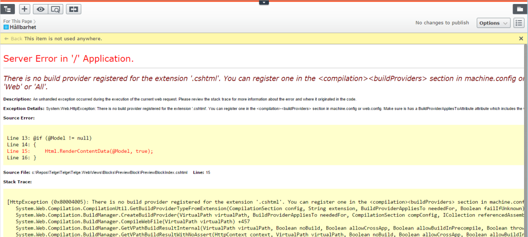 I was updating EPiServer to EPiServer 9.7 and while I was at it I updated System.web.mvc to 5.2 as well. Unfortenatly the preview of blocks stopped working with the error "There is no build provider registered for the extension '.cshtml'.".