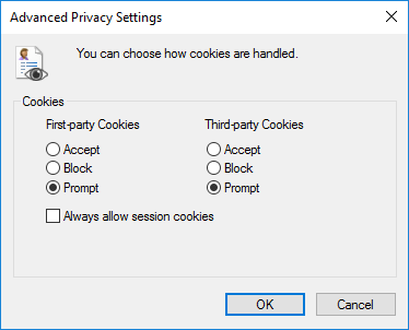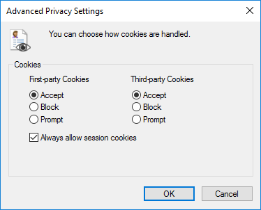 Internet Options > Privacy > Advanced
