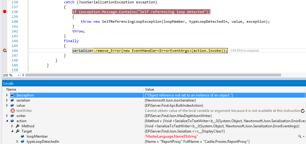 EPiServer.Logging.Compatibility.LogManager+CompatibilityWrapper.Error - DEV02: An exception occurred while indexing content 9444__mediaimageprovider: Object reference not set to an instance of an object. System.NullReferenceException: Object reference not set to an instance of an object. at lambda_method(Closure , ILocalizable ) at EPiServer.Find.DelegateValueProvider`2.GetValue(Object target) at Newtonsoft.Json.Serialization.JsonSerializerInternalWriter.CalculatePropertyValues(JsonWriter writer, Object value, JsonContainerContract contract, JsonProperty member, JsonProperty property, JsonContract& memberContract, Object& memberValue) at Newtonsoft.Json.Serialization.JsonSerializerInternalWriter.SerializeObject(JsonWriter writer, Object value, JsonObjectContract contract, JsonProperty member, JsonContainerContract collectionContract, JsonProperty containerProperty) at Newtonsoft.Json.Serialization.JsonSerializerInternalWriter.Serialize(JsonWriter jsonWriter, Object value, Type objectType) at EPiServer.Find.Api.BulkActionConverter.WriteJson(JsonWriter writer, Object value, JsonSerializer serializer) at Newtonsoft.Json.Serialization.JsonSerializerInternalWriter.SerializeConvertable(JsonWriter writer, JsonConverter converter, Object value, JsonContract contract, JsonContainerContract collectionContract, JsonProperty containerProperty) at Newtonsoft.Json.Serialization.JsonSerializerInternalWriter.Serialize(JsonWriter jsonWriter, Object value, Type objectType) at Newtonsoft.Json.JsonSerializer.SerializeInternal(JsonWriter jsonWriter, Object value, Type objectType) at EPiServer.Find.Json.Serializer.SerializeToTextWriter(JsonSerializer serializer, Object value, TextWriter textWriter) at EPiServer.Find.Json.Serializer.SerializeObjectsToJsonRequest(JsonSerializer serializer, IJsonRequest jsonRequest, IEnumerable values) at EPiServer.Find.Api.BulkCommand.Execute() at EPiServer.Find.Cms.ContentIndexer.IndexWithRetry(IContent[] contents, Int32 maxRetries) at EPiServer.Find.Cms.ContentIndexer.Index(IEnumerable`1 content, IndexOptions options) at EPiServer.Find.Cms.ContentIndexer.IndexBatch(IEnumerable`1 content, Action`1 statusAction, Int32& numberOfContentErrors, Int32& indexingCount)