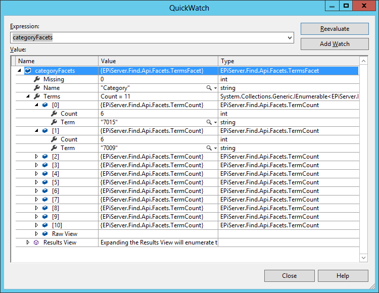 Count = categoryFacet.Count