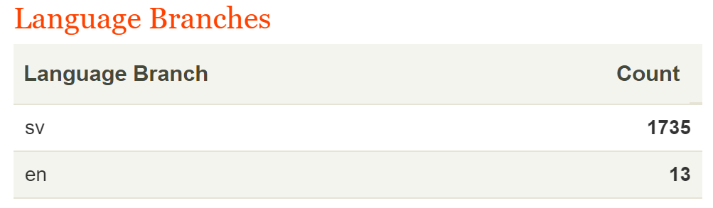 And when using the index from the test environment I only had swedish
