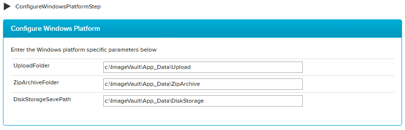 The installer will suggest paths placing the storage folders inside the app_data folder. My preference is to move the folders to a more central location where they aren’t dependent of the current ImageVault version.