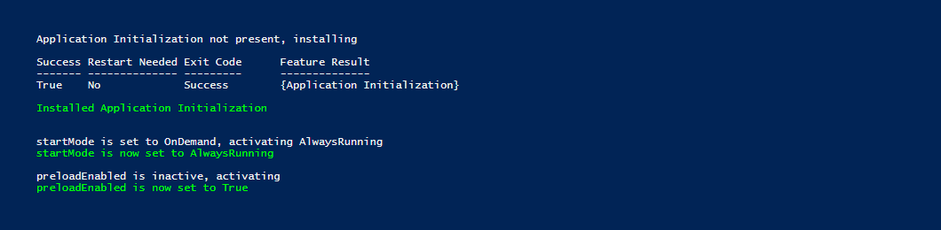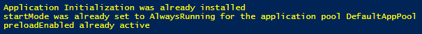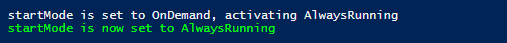 Write-Host "startMode is now set to $($appPool.startMode)`n" -ForegroundColor Green