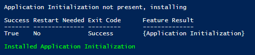 $webAppInit = Get-WindowsFeature -Name "Web-AppInit" Install-WindowsFeature $webAppInit -ErrorAction Stop