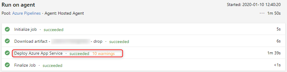 Check your warnings in the log, Azure DevOps > Project > Pipelines > Releases > The actual Pipeline