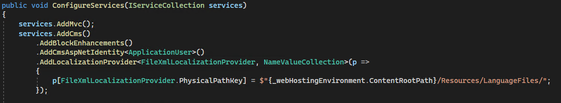 p[FileXmlLocalizationProvider.PhysicalPathKey] = $"{_webHostingEnvironment.ContentRootPath}/Resources/LanguageFiles/";