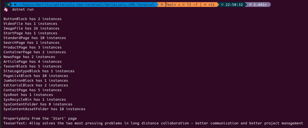 The sky is the limit to what type of services you can build from here on. The sources are available on GitHub at https://github.com/EricHerlitz/optimizely-cms-terminal.