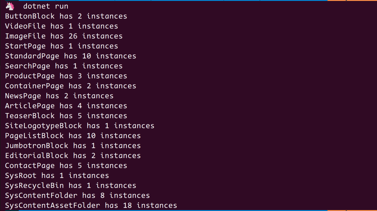 Count = contentModelUsage.ListContentOfContentType(contentType).DistinctBy(x => x.ContentLink.ID).Count()